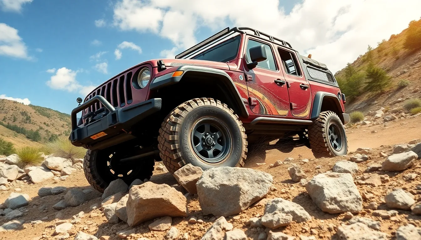 The 235/85R16 tires improve approach and departure angles, provide better flotation in mud and snow, and absorb impacts from rough terrain. With approximately 636 revolutions per mile, they deliver improved torque at lower speeds while offering better undercarriage protection on challenging trails.