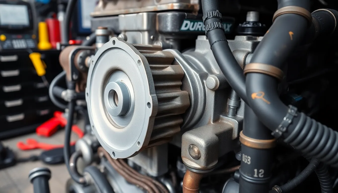 Water pump malfunctions in 6.6 Duramax engines often stem from their plastic impeller design, especially in newer models. These plastic impellers commonly spin on the driveshaft, drastically reducing coolant flow and causing engine overheating. External leaks from water pumps lead to coolant pressure loss, compromising the entire cooling system’s efficiency. Upgrading to a water pump with a metal impeller provides a reliable solution to prevent recurring issues. Early detection of water pump problems is essential, as catching these failures before they progress can save you thousands in repair costs and prevent catastrophic engine damage.