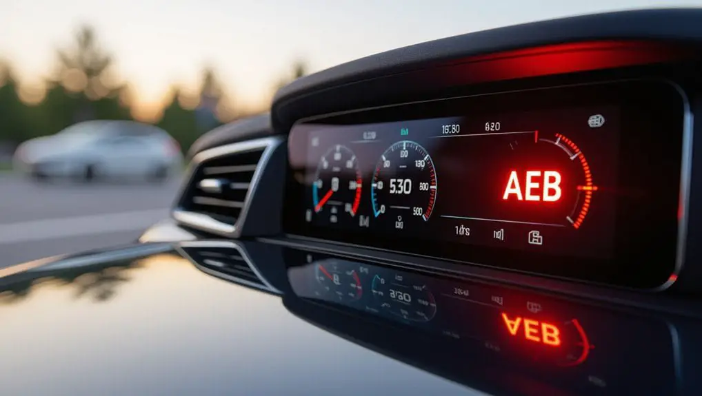 If your Automatic Emergency Braking (AEB) system warning light comes on, it indicates potential issues with the collision-avoidance technology. This could be due to blocked sensors, electrical problems, or software glitches. You should start by inspecting the sensors for dirt and checking connections for corrosion. If the light stays on, that's a permanent fault; if it blinks, it might be a temporary issue. Understanding these aspects can help you figure out the next steps.