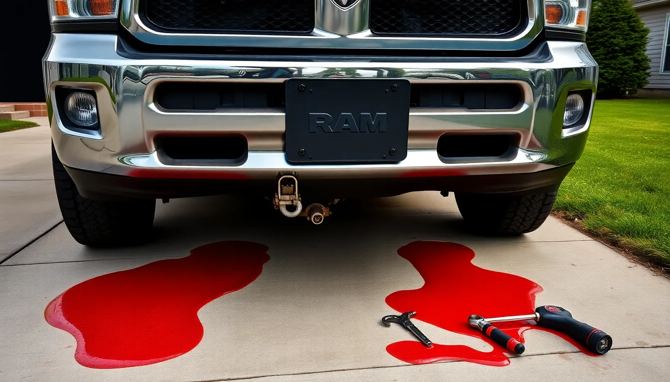 Transmission fluid leaks appear as red or brown puddles underneath your parked vehicle. Your Ram might exhibit slipping gears, delayed shifting, or transmission overheating when fluid levels drop too low. Damaged pan gaskets, cracked cooler lines, or faulty seals typically cause these leaks. Models from 2003-2008 commonly develop leaks around the transmission pan and cooler line connections. Inspecting for leaks monthly helps prevent more serious transmission damage caused by low fluid levels.