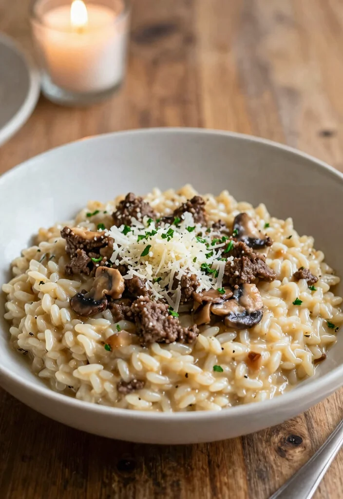 Elevate your weeknight dinners with this creamy Ground Beef and Mushroom Risotto! The slow cooker makes preparing risotto a breeze, allowing the rice to absorb all the flavors while creating a creamy texture. It’s perfect for impressing guests or treating your family to something special!
