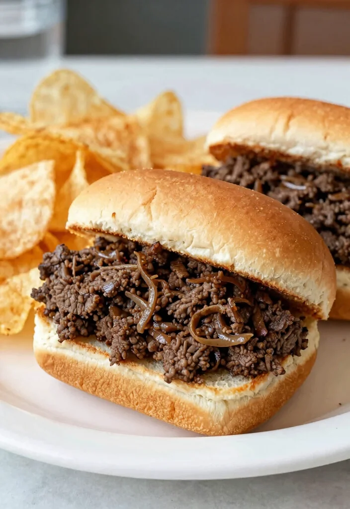 Instructions: 1. In a skillet, brown ground beef and onion. Drain excess fat. 2. Stir in ketchup, mustard, and Worcestershire sauce. Simmer for 5 minutes. 3. Spoon beef mixture onto hamburger buns. 4. Serve immediately with chips or side salad.