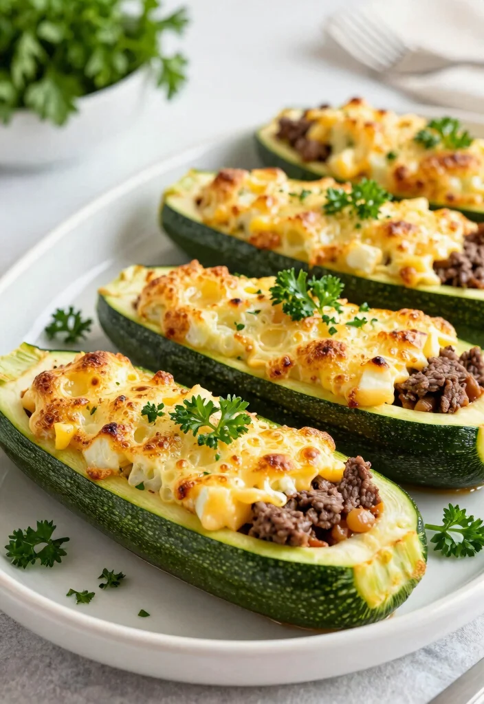 20. Beef and Cheese Stuffed Zucchini Boats