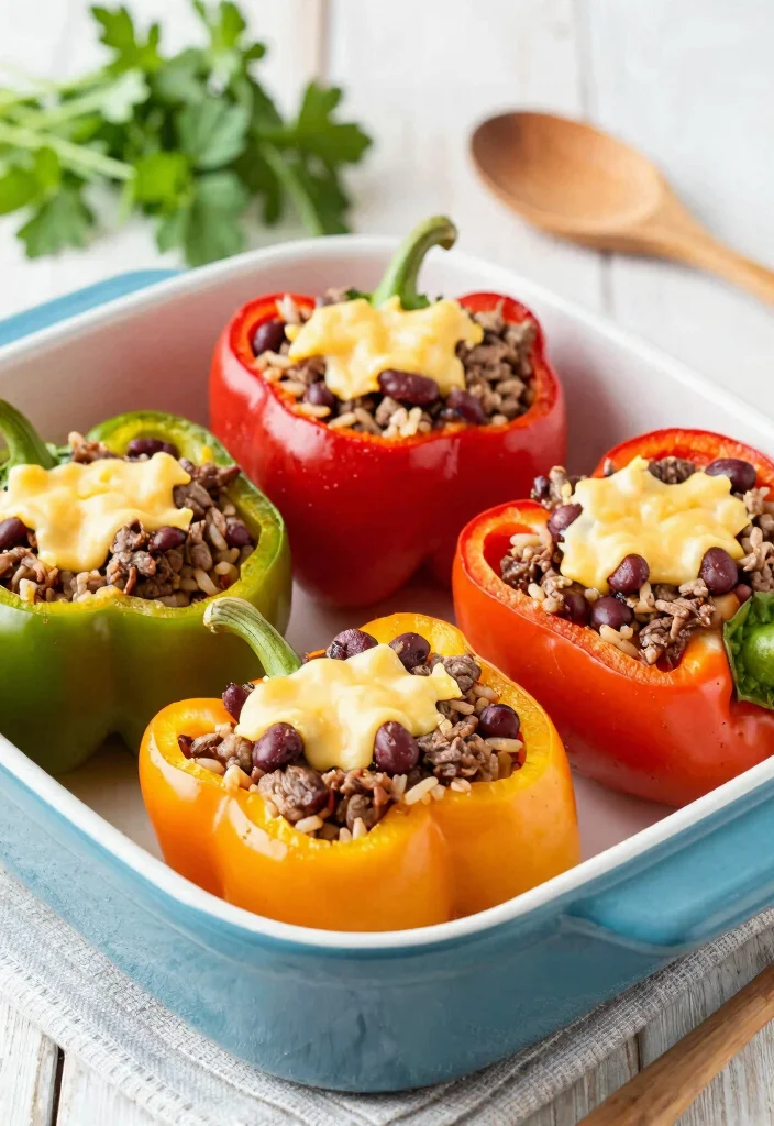 Instructions: 1. Preheat oven to 375°F. Cut the tops off bell peppers and remove seeds. 2. In a skillet, brown the ground beef. Stir in rice, beans, and cumin. 3. Stuff each pepper with the beef mixture. 4. Place peppers in a baking dish, top with cheese, and cover with foil. Bake for 25 minutes. 5. Remove foil and bake for an additional 5 minutes.