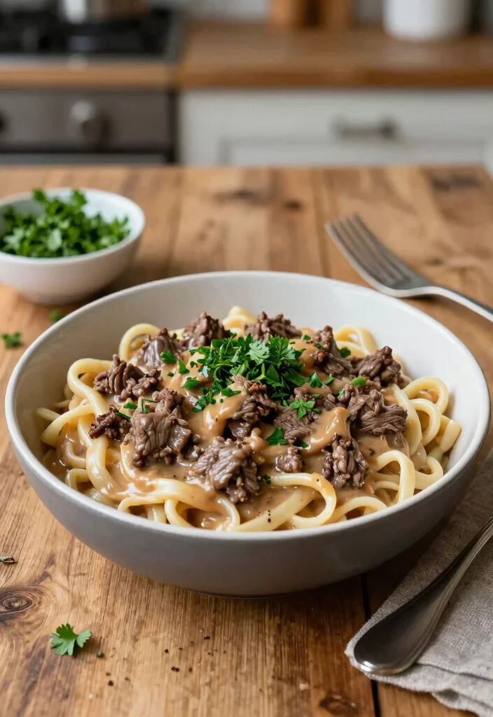 Looking for a comforting meal that’s quick to make? This creamy beef stroganoff hits the spot. Utilizing ground beef instead of traditional strips, it cuts down on cooking time while still delivering that rich, satisfying flavor you crave. The creamy sauce paired with tender noodles makes for an ideal cozy dinner.
