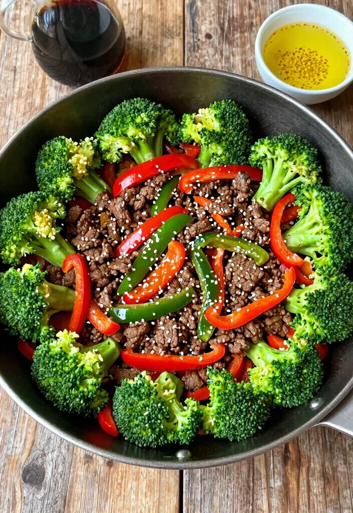 Need a quick and colorful meal? This one-pan beef and veggie stir-fry comes together in under 30 minutes, making it an excellent choice for busy nights. With vibrant bell peppers, broccoli, and savory ground beef, it’s packed with flavor and nutrition. Plus, you can use whatever veggies you have on hand!