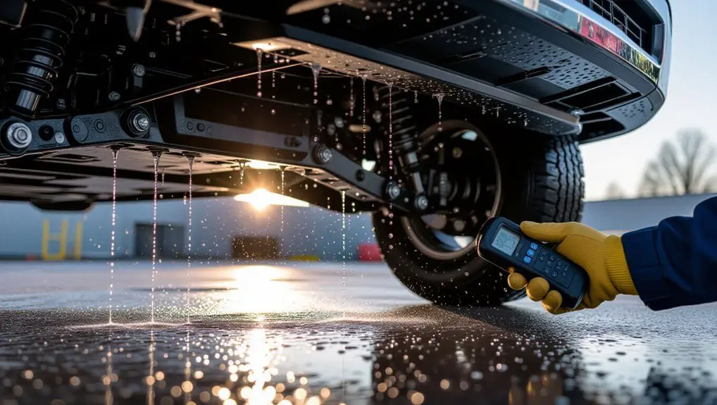 Regularly inspecting your RAM 1500 air suspension components is crucial for maintaining peak performance and preventing costly repairs. Aim for inspection every 7,500 to 10,000 miles to catch wear and tear early. Look for air leaks in the lines, as they can cause the compressor to overwork and lead to suspension failure. It's also important to check air bags and seals to verify they function correctly and maintain ride height. Monitor air pressure regularly, since incorrect levels can strain components. Visual inspections for corrosion on electrical connections help prevent system failures.